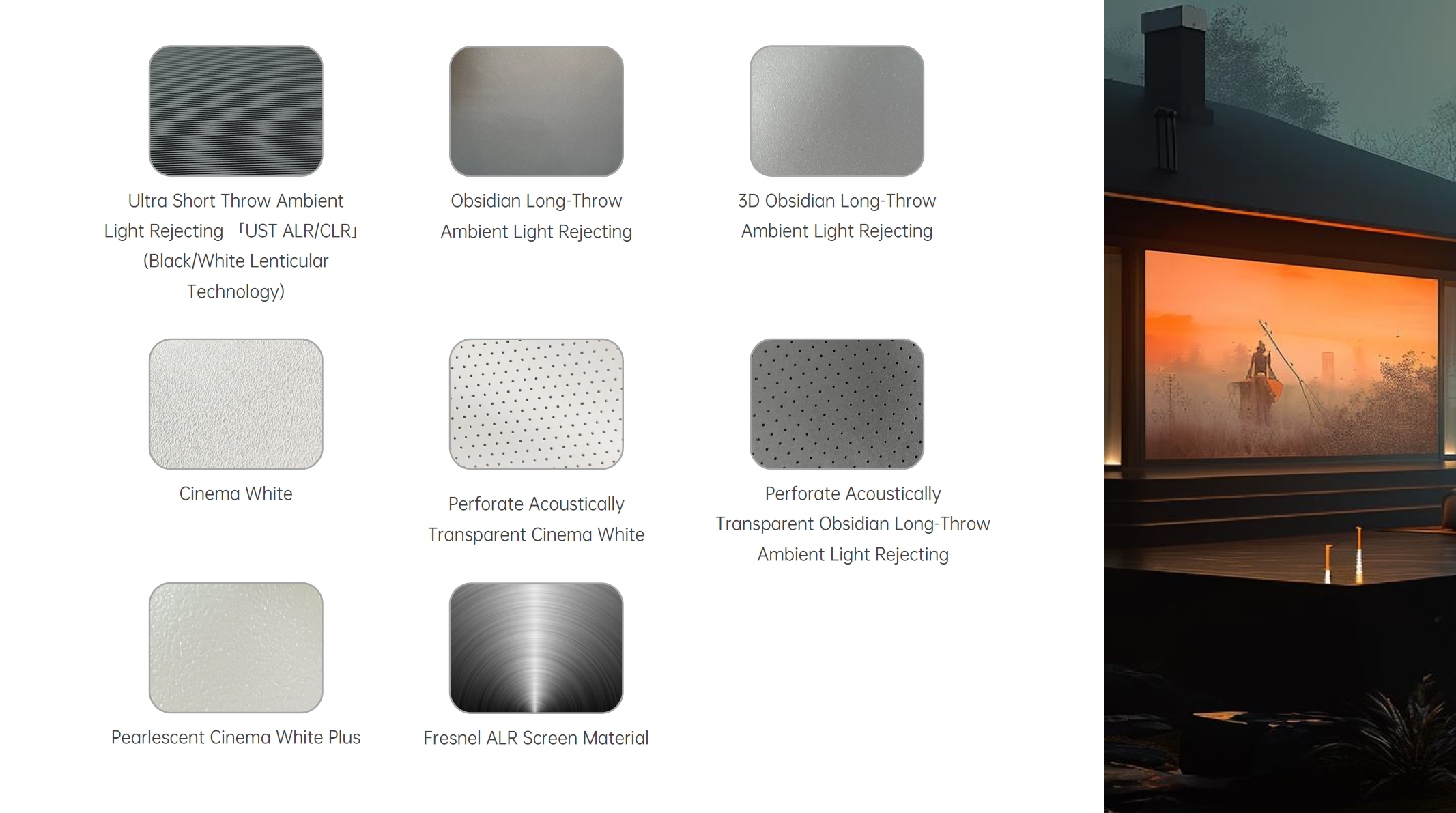 Perforated Material: ให้เสียงทะลุผ่านจอได้ เหมาะกับห้องโฮมเธียเตอร์ที่ใช้ลำโพงหลังจอ