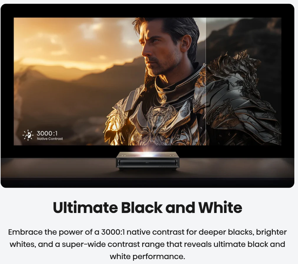 - เหมาะสำหรับ: ผู้ที่ต้องการความคมชัดของภาพที่สมจริง เช่น การดูหนังในห้องมืดเพื่อรับประสบการณ์ภาพที่ลึกและมีมิติ เหมาะสำหรับการสร้างบรรยากาศโรงภาพยนตร์ในบ้านที่ควบคุมแสงได้ดี