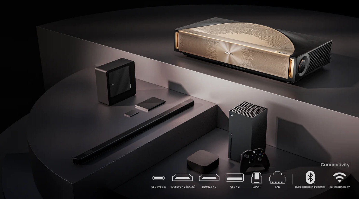 เครื่องเดียว เปลี่ยนบ้านคุณให้เป็นโรงภาพยนตร์!” ด้วยความสามารถฉายภาพขนาดสูงสุดถึง 200 นิ้ว สำหรับการติดตั้งแบบ Ultra Short Throw (UST) แบบใกล้กำแพง — ให้ภาพใหญ่พร้อมรูปทรงที่สวยงาม เหมาะเป็นเฟอร์นิเจอร์อีกชิ้น