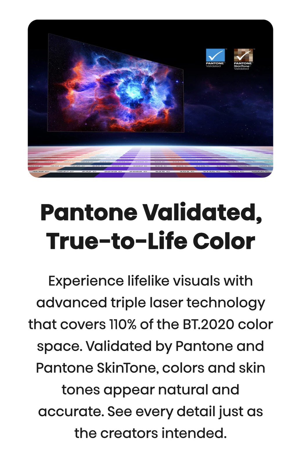เทคโนโลยีเลเซอร์สามสีขั้นสูงของ L9Q ครอบคลุมขอบเขตสี 110% ของมาตรฐาน BT.2020 พร้อมการรับรองจาก Pantone และ Pantone SkinTone ทำให้คุณเห็นเฉดสีได้ตรงตามที่ผู้สร้างตั้งใจอย่างแท้จริง